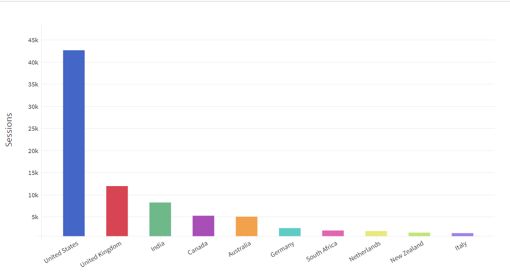 Bar Graphs. If you’re showing discontinuous data, a bar graph is probably the preferable option. For instance, if you’re comparing traffic by country, a bar graph will allow you to easily compare popularity by nation. With bar graphs, though, it often helps to sort with the highest bars on the left and lower bars on the right.