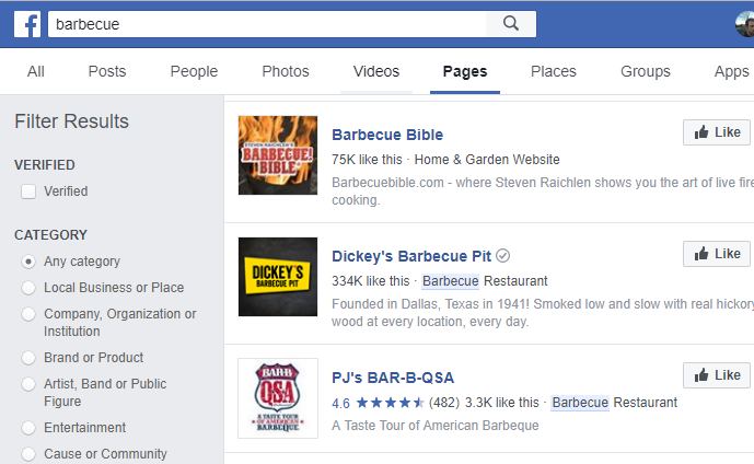 Bob first goes back to Barbecue Bible’s page and then looks over to the right-hand side of the page and finds all the other pages that the Barbecue Bible page has Liked: