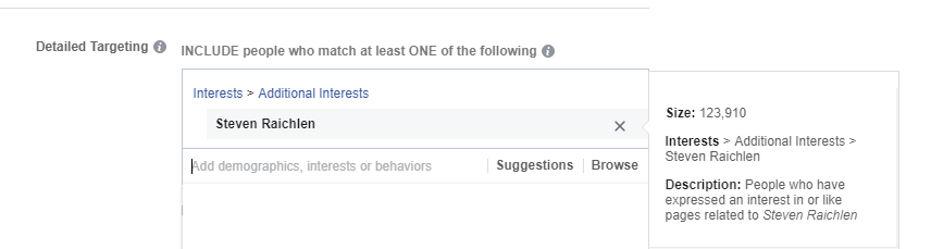 When Bob searches for Lang BBQ on Facebook directly in the search bar, he comes across their Facebook page: https://www.facebook.com/LangBBQsmokers/. By going to the Detailed Targeting section of the Audience builder, Bob is able to find fans of that page. By repeating this process for several of the top retailers in the space, Bob can establish a highly relevant audience comprised of fans of companies that sell very similar products. These are individuals who are likely to be either in-market for a barbecue smoker right now or that have at least demonstrated prior willingness to spend money on this type of product.