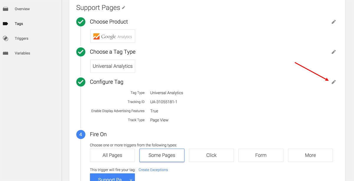To do that, start by editing the tag and clicking on the pencil next to “Configure Tag.”