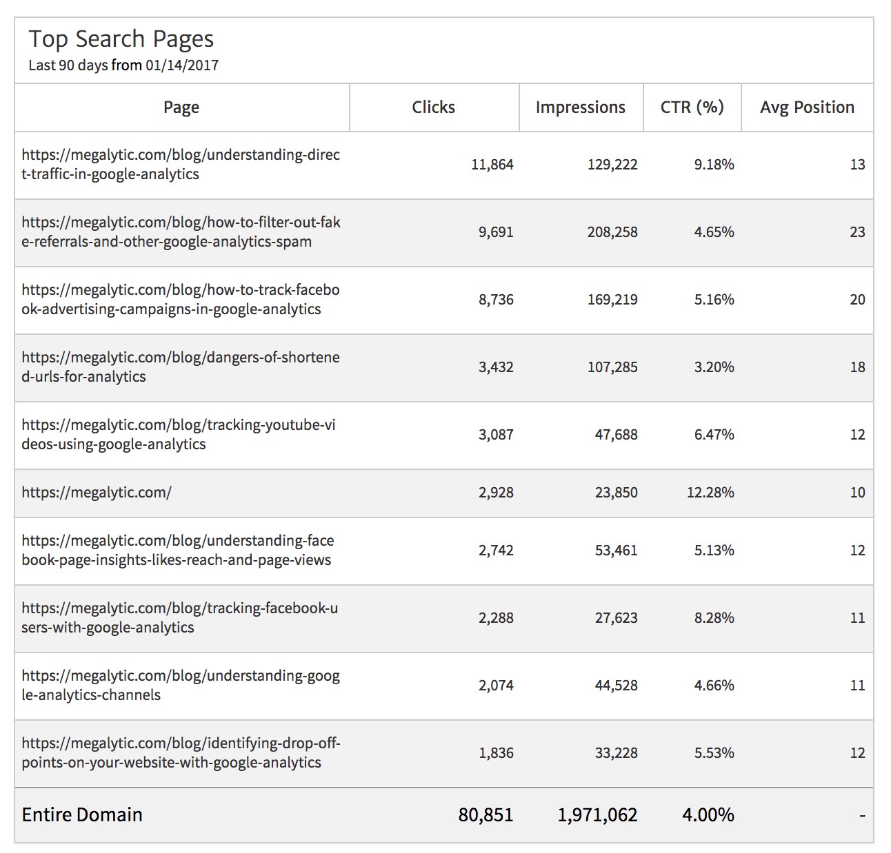 As online marketing moves increasingly toward audience-based targeting over keyword-based targeting, you should also show top organic pages. Integrating Search Console data will allow you to include pages correlated with data.