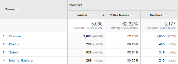 Or, you can use the Browser report to show that only six percent of your audience is visiting you via Internet Explorer, so maybe it’s okay if certain design or development functionalities don’t work ideally in those settings.