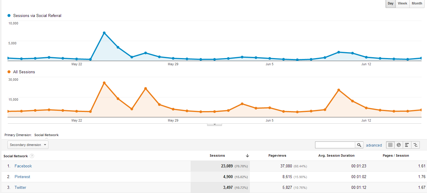 For example, if you’re a local health food site intuition may tell you that focusing on Pinterest will bring the greatest return on investment and spur the most conversation online. But the Social Network Referrals report can show you it’s not your pinning driving traffic, but Facebook.