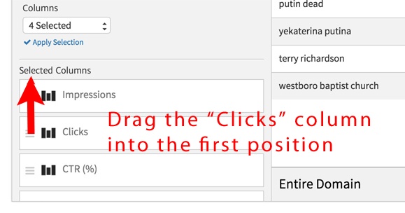 To do that, we open the widget editor and rearrange the columns by dragging "Clicks" into the first position.