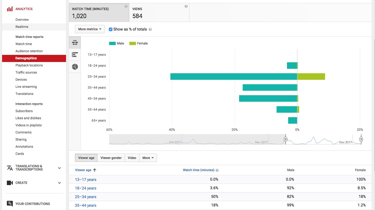 YouTube’s data can be helpful to share with a client when a specific target demographic has been defined to show that you understand their target audience, and have been successful at reaching it.