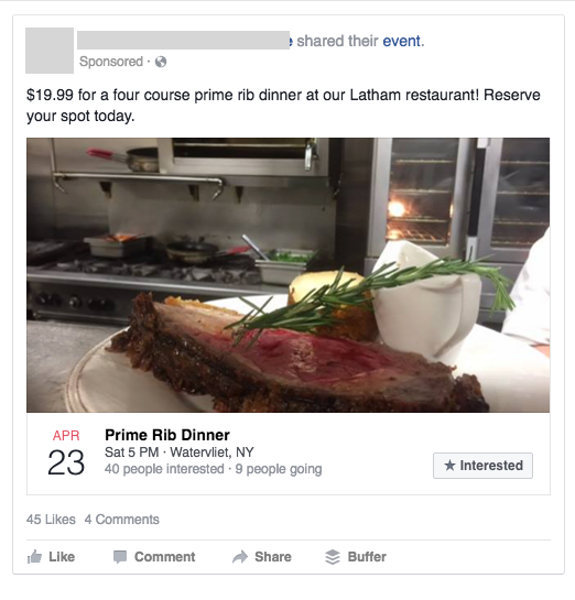 When people see an ad, they’ll also see how many others have responded to the event as “interested” or “going.” As more people respond, their friends are eligible to see the event both through both paid and organic targeting. You can plan your organic posts leading up to the event to coincide with your paid strategy, structuring both to drive people toward the event page.