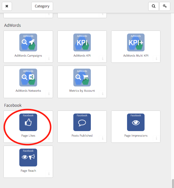 In order to use this widget, you’ll first need to connect your Facebook business page to Megalytic. When you’re ready to add the Page Likes widget to your report, you’ll find it listed under the Facebook section of Megalytic widgets.