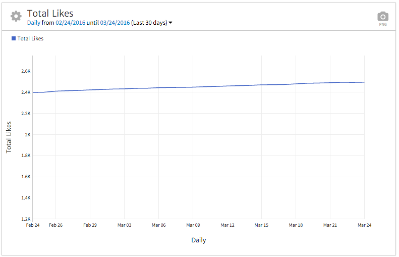 Our final updated widget shows a trend of Likes increasing week by week for this page.
