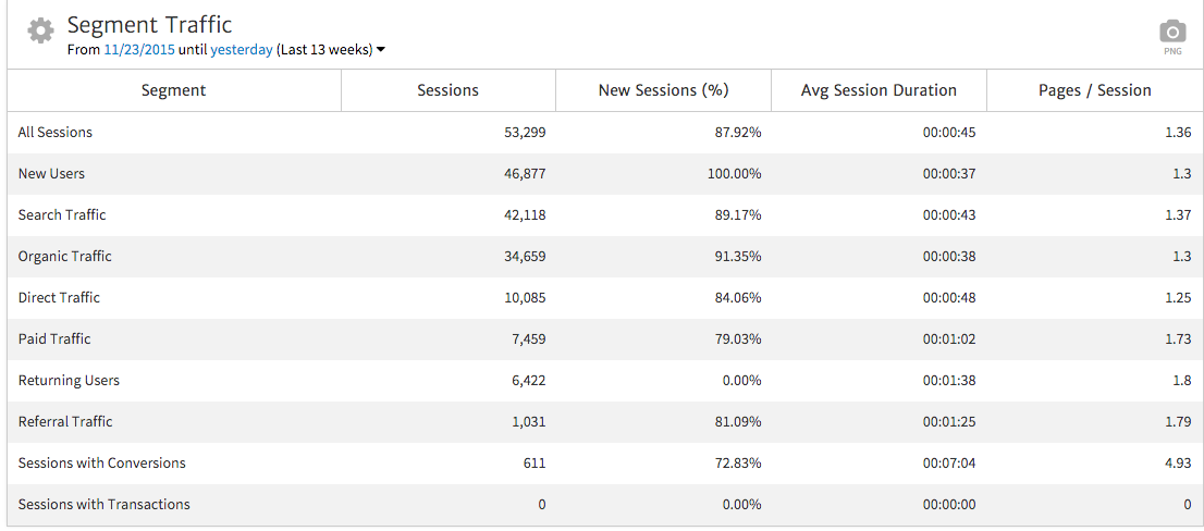 The Traffic by Segment widget provides a powerful way to customize your reports beyond the default data included in Google Analytics. By creating and syncing custom segments, you can compare performance by factors such as user subsets or market regions.
