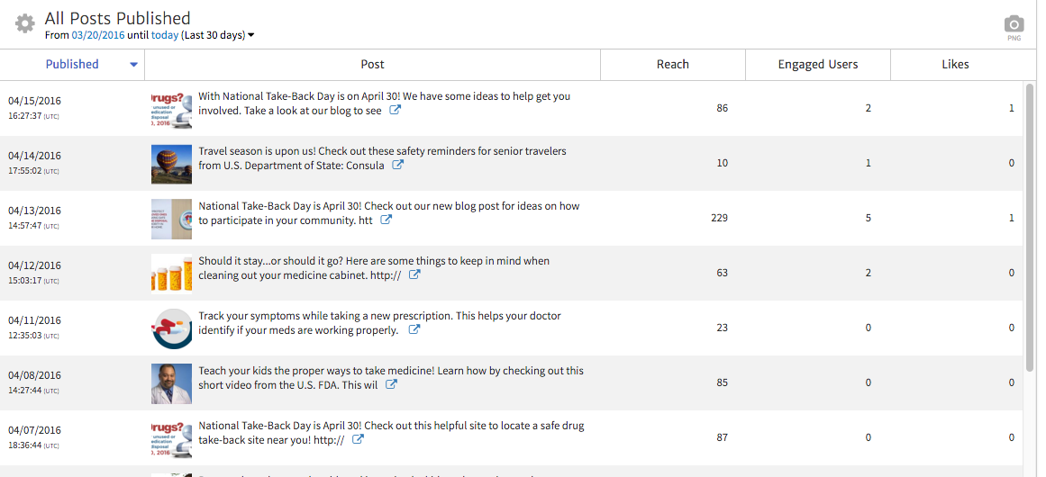 First you can change the date range using the date selector to show posts from further back in time and over longer or shorter periods. This allows you to show posts from the last month or from the last quarter depending on the duration your report covers.