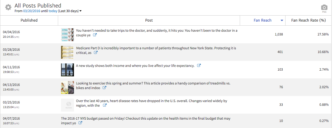 Here, we can see that even the post with the highest reach only showed up for 28% of fans. If we want to reach more fans, we may need to include some paid promotion to people who like the page in order to ensure they see our content.
