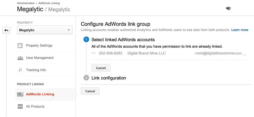 Under “Link Configuration,” the next step that appears, select the views you’d like to link to the AdWords account. Finally, click “Link Accounts,” and you’re all set!