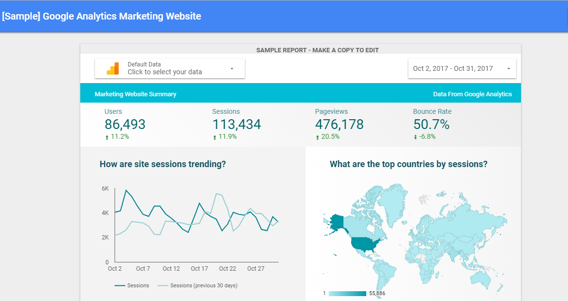Google Data Studio works by taking raw data and funneling it through a visualization software that gives you fine-grained control over the dimensions and metrics being displayed. You can create highly customized visualizations, but to get the most out of this level of control, you will need to be familiar with the underlying data fields available from data sources like Google Analytics, AdWords, etc.