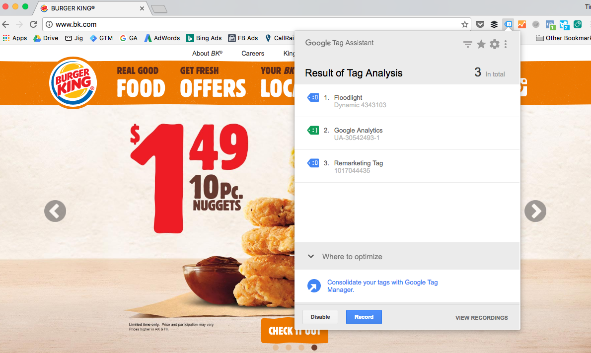 Whether testing a new analytics configuration or scouting out competitor configurations, you can use a Chrome extension to identify what tags are in place on sites.