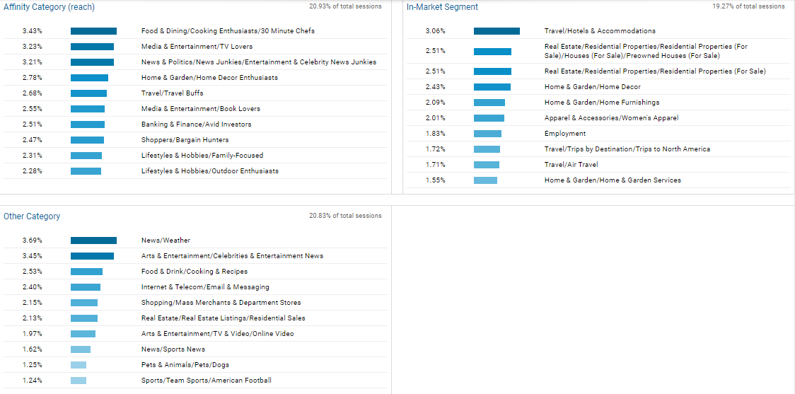User pathways and engagement throughout your site can provide insights into customer interests and thought processes. But also be sure to look at demographics such as ages, genders, locations, affinity categories of customers who have made a purchase or inquired on their site.