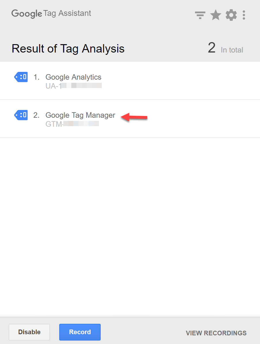 Google Tag Assistant is useful because it shows you the Google Tags that are installed on your website. In the image above, you can see that both GTM and Google Analytics (GA) are installed.