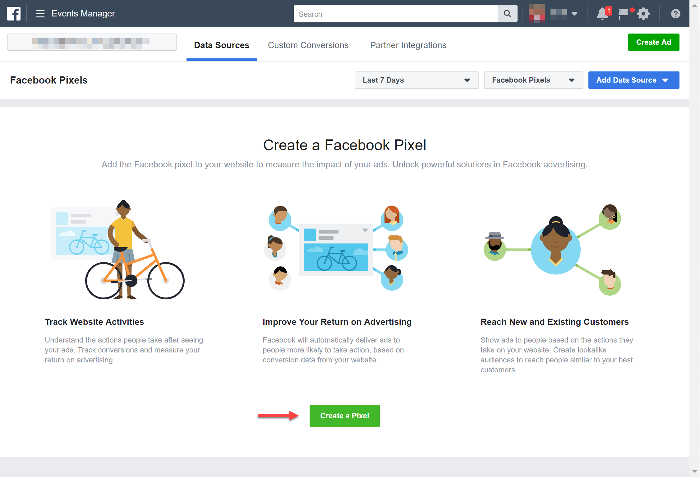 If you don’t already have a Facebook Pixel, click on the “Create a Pixel” button.