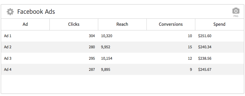 CSV and image widgets allow marketers to show data beyond the systems automatically integrated with Megalytic. Your reports can include a full picture of your marketing efforts, whether you’re showing Facebook page stats, ad campaign results, or sales figures. Take some time to learn how you can customize these widgets to add the right data to your reports and best communicate to your clients.