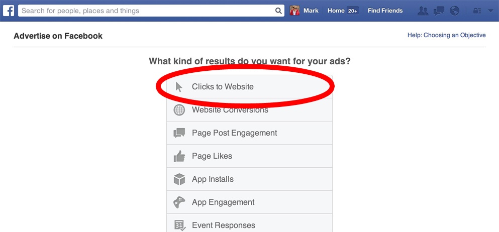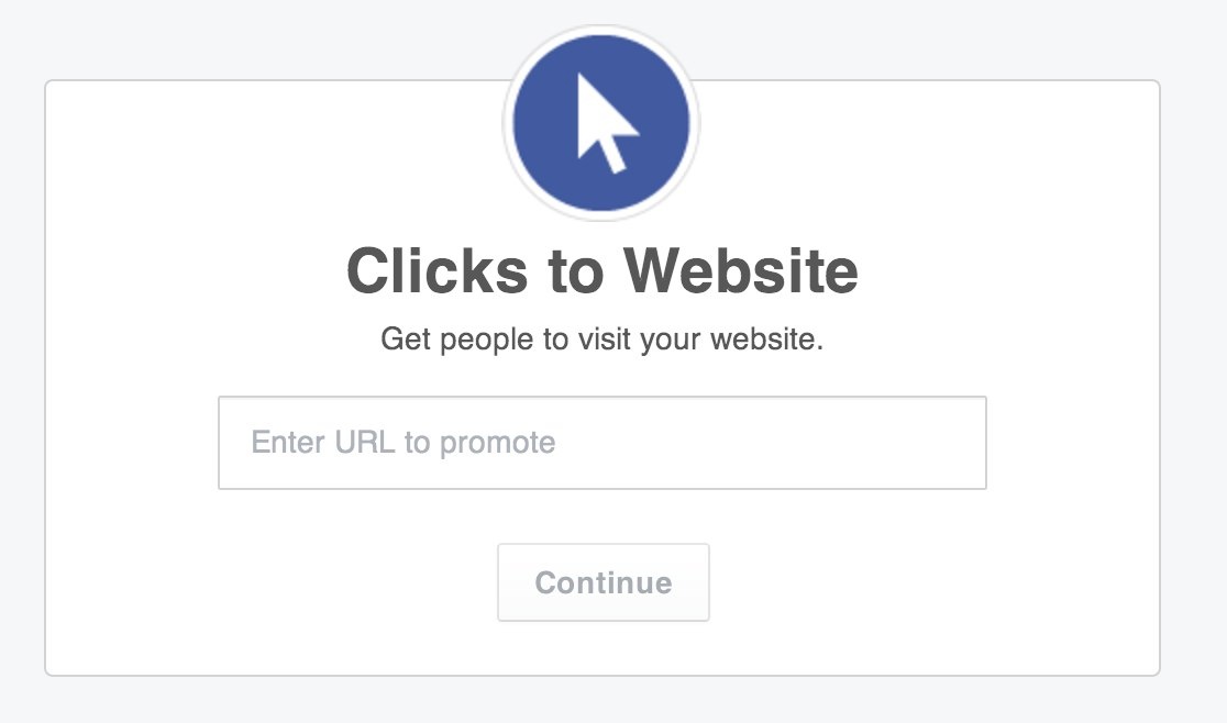 For this example, let's assume that you want to optimize for clicks to your website. So, select that option from Facebook.