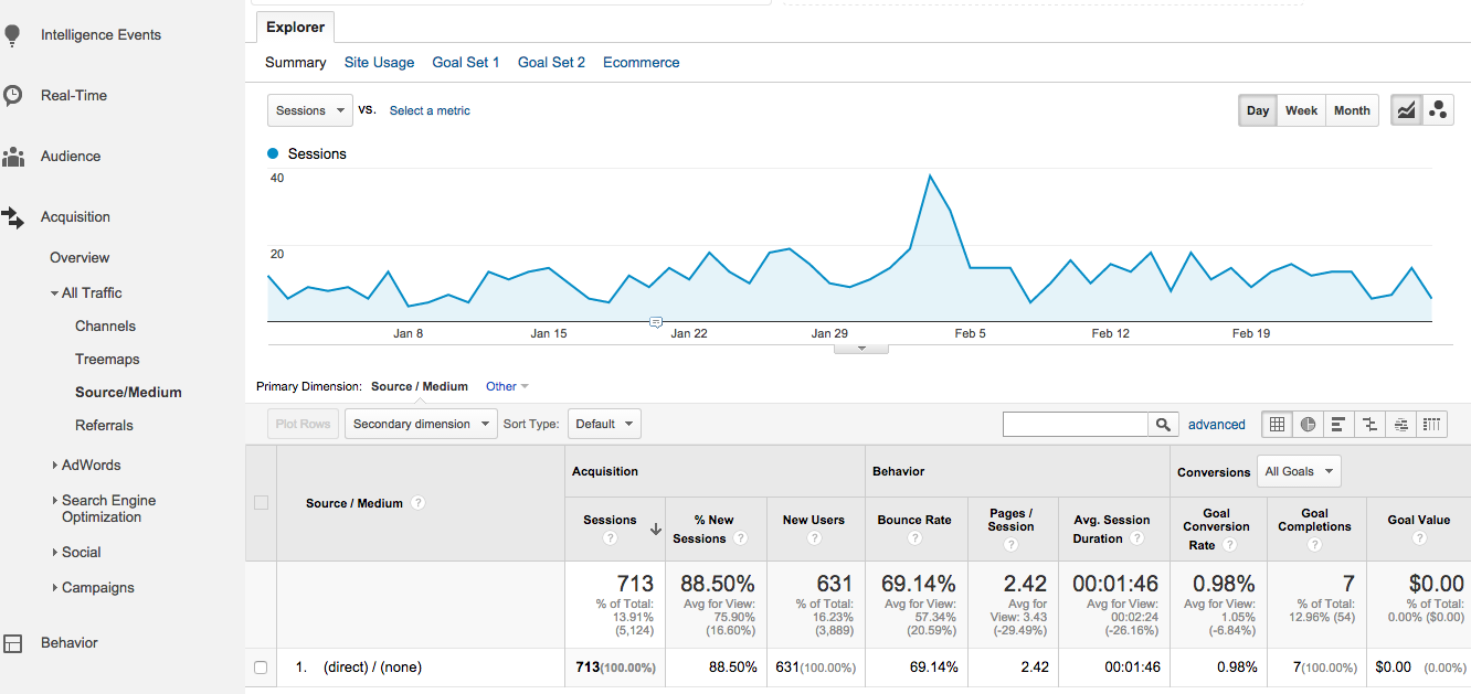 Here we see that multiple blog articles, as well as some miscellaneous URLs from the blog, drove Sessions to the site. We can make a few observations from this data.