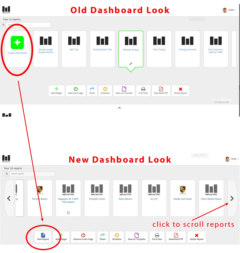 - Improved Dashboard UI – Our new dashboard provide a more intuitive interface for managing your reports. - details here.