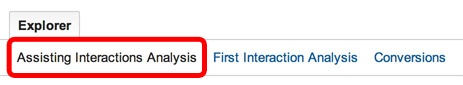 This report can show you not only the source of the first interaction, but all the interaction sources leading up to the conversion. To see that view, select the “Assisting Interaction Analysis” tab in the report Explorer.