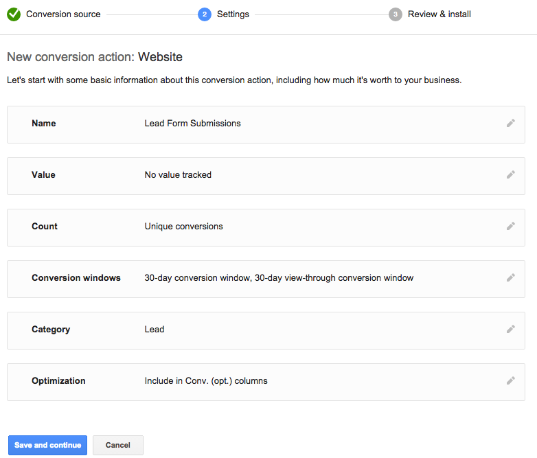 - Optimization: Choose to use this conversion for AdWords bid strategies.