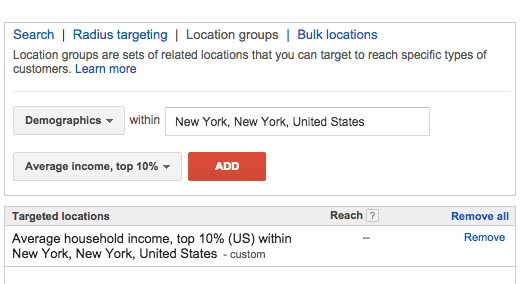 Somewhat hidden in Google AdWords is the option to target by income tier within a region. This option can be especially valuable when promoting a more expensive product that only those with higher household incomes will purchase.