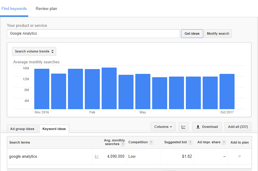 Other keyword tools can supplement Keyword Planner data and give additional ways to analyze and compare keyword opportunities. But while other tools offer information on keyword search volume in Google, Keyword Planner is the tool that is most connected to that data, and while it’s certainly fallible, it’s about as close to the source as one can get.