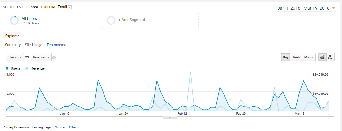 We recommend using both the data from your email platform data as well as Google Analytics. Native email platforms have great deliverability data, but less refined conversion level data. Conversely, Google Analytics can track an inbound click from a landing page to a shopping cart, but it’s not going to give you reasons for email bounces. As strong proponents of integrated reporting, we’d suggest that a degree of data redundancy and overlap are perfectly fine. Moreover, extreme variance between data providers might be a strong clue that something isn’t quite set up properly.