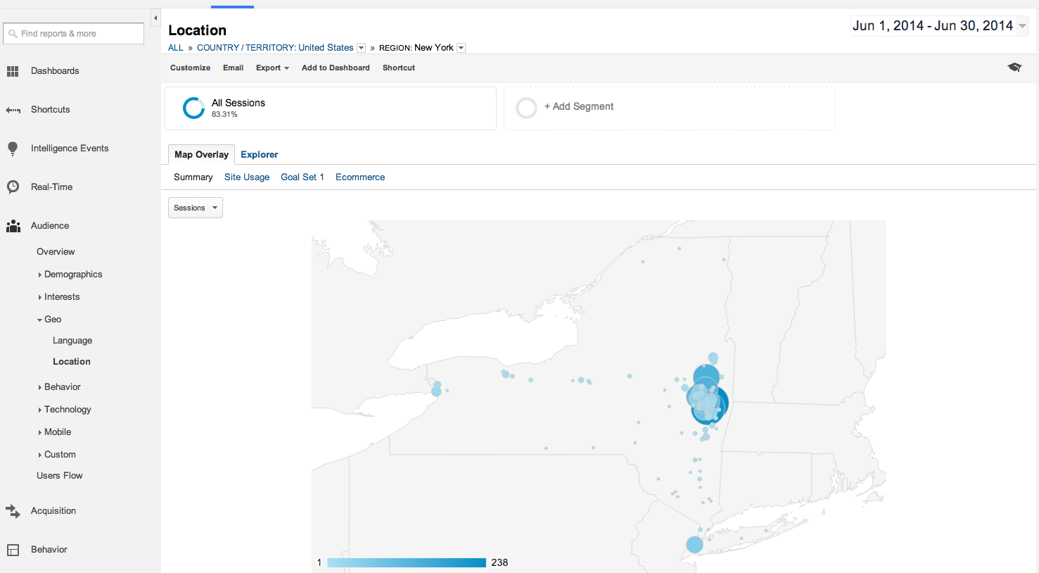 Finally, if you ran campaigns targeted to specific regions, look at sessions and conversions for those geographic areas. For example, you can look at conversions by city or metro area and decide where you should focus ad spend the next time around based on where you see the best response. Or if you didn’t make much of a dent in an area you’d hoped, you can note to focus more advertising effort there next time around. Read our tips for segmenting stats by geography for more specifics on how to slice and dice this data.