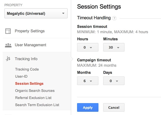 During this time, you can customize your session and campaign periods. By default, they stay as they have always been (session = 30 minutes; campaign = 6 months).