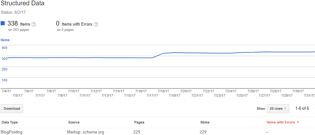 In the Structured Markup section of SC you can review if and how your site is using structured markup. Using this section, you can also uncover any warnings or errors that may exist with your current implementation.