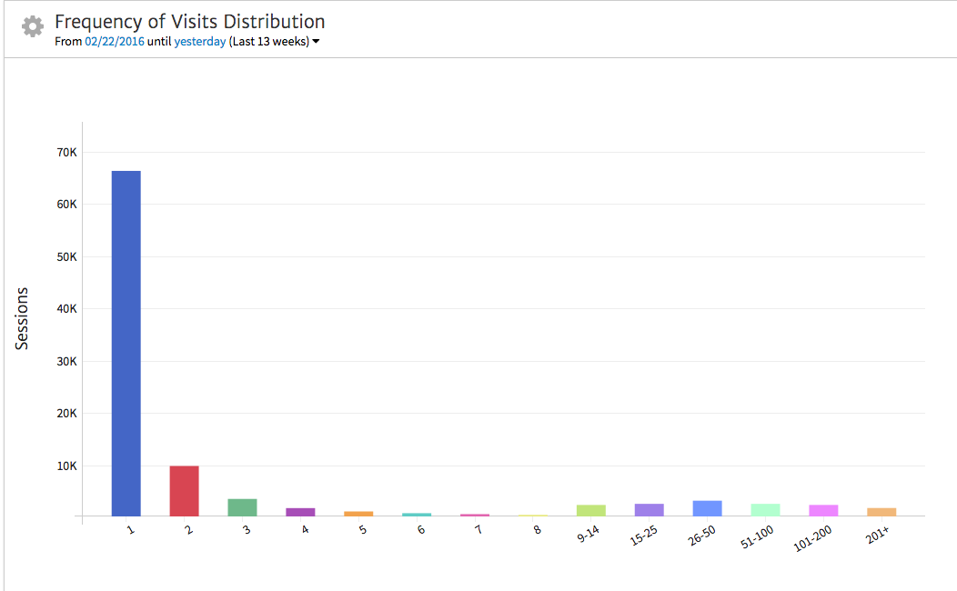 Of course, you can show much more than Sessions by frequency in this widget. Let’s tweak it to show how likely people are to convert based on the number of days they took to come back. To customize this widget, click the gear in the upper left to get to the widget options.