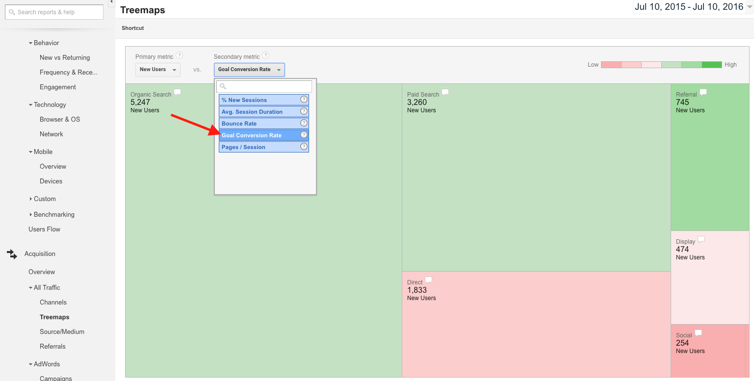 In this report, we’ve covered some practical applications of the Treemaps report to help improve your analysis of online performance data. This report allows you to quickly flag high and low performers among channels, while delving into specific metrics for site referrals, social media, and AdWords campaigns.